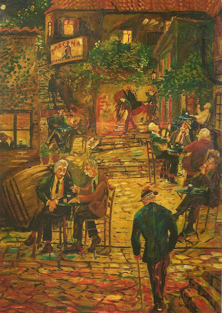 έξω από τα καπηλειά .....τους ταβερνιάρηδες με τις άσπρες ποδιές....τους κανταδόρους....